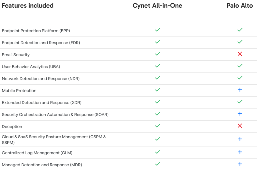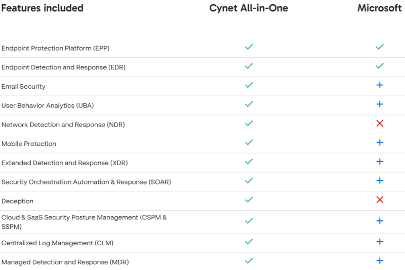 Cynet 是唯一真正將 EPP、EDR、XDR、UBA、NDR、CLM、SOAR、MDR、Deception、Email Security、Cloud Security 等功能「全部原生整合」於單一平台的進階資安服務,實現高防禦力 + 低維運成本 + 多層進階防禦能力 + 自動化協作機制的完美組合。