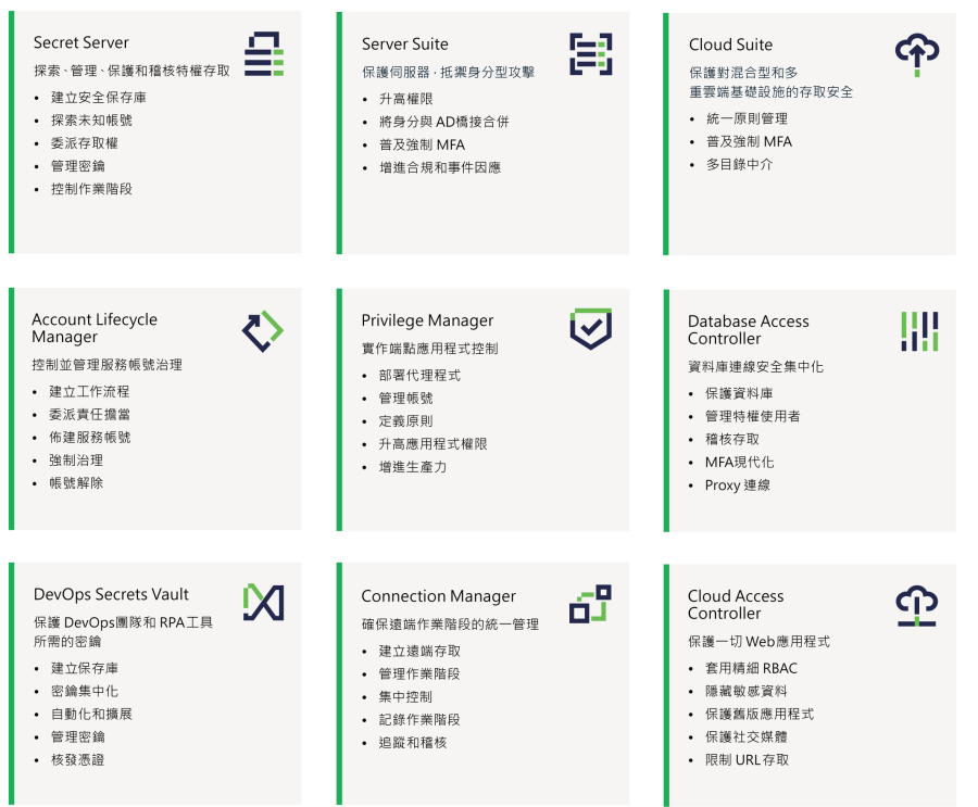 更具信心地維持、繼而演進特權存取管理計畫,並且達到更高的利益關係人採行率。Delinea 特權存取管理解決方案設計精神為協助劃清存取的界限,以減輕複雜度,同時使成本降到最低,Delinea 賦與使用者更高的數位自由,也讓 IT 和安全團隊在更短的時間內得到更大的控制程度,展現更高的價值。