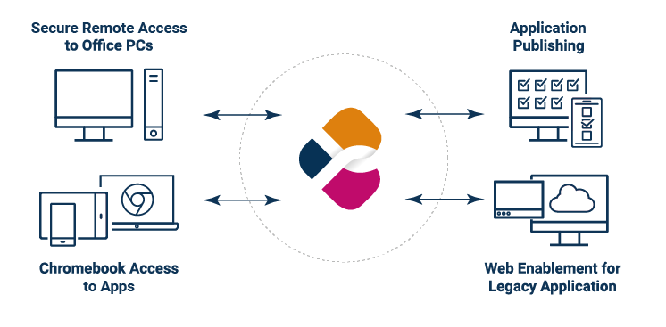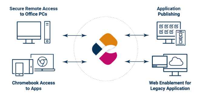 Ericom Connect® Secure Remote Access 雲端虛擬運算整合解決方案,內建Secure Gateway與Load Balance機制,可整合發佈Windows應用程式、虛擬桌面,以及使用者PC桌面,搭配Ericom極優化的RDP加速技術,以利管理者輕鬆建置與維護零信任之遠端安全存取機制。Ericom Connect® 可加速RDP連線高達5~10倍,特別適合遠距工作有限的頻寬環境或兩岸三地遠端連線之應用。