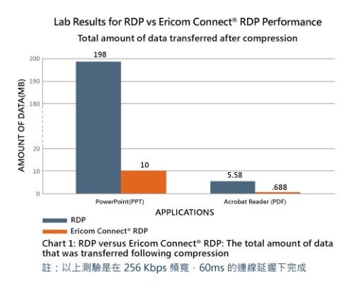 傳統 RDP 與 Ericom Connect® RDP加速技術之資料壓縮傳輸比較