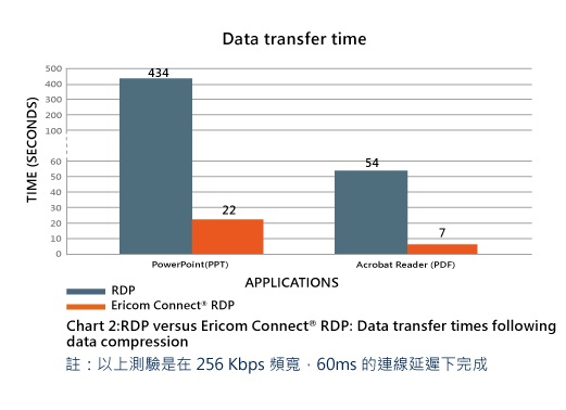 傳統RDP與Ericom Connect® RDP加速技術之資料傳輸時間比較
