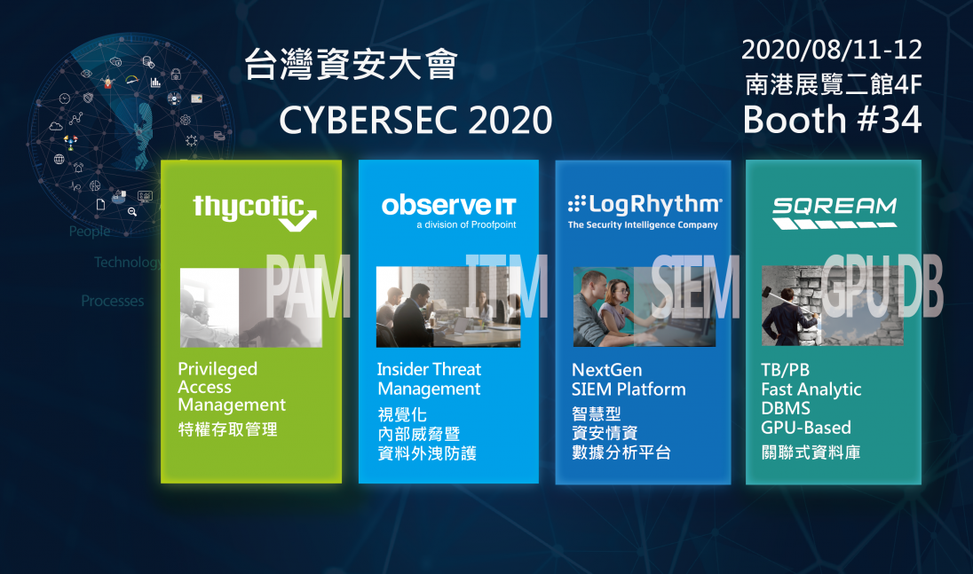 iThome所主辦之「2020臺灣資安大會」將於2020年8月11-12日假南港展覽館二館舉行,漢領國際於4樓 #34攤位,展示國內各產業當下最迫切需要的資安威脅整合解決方案。漢領國際資安產品技術總監黃漢宙將分別於8月11日、12日於Booth #34展場進行各專題產品說明,時段如下: