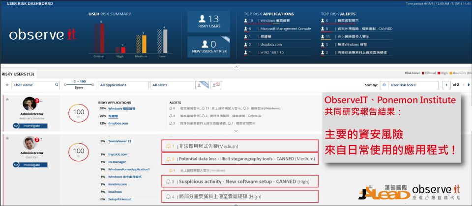 ObserveIT及Ponemon Institute共同研究報告指出: