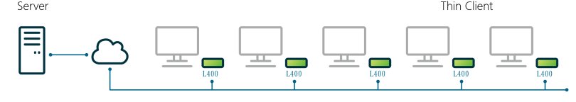 NComputing於2023第四季推出L400,結合 vSpace™ Pro Enterprise 虛擬桌面軟體提供最佳化的虛擬桌面體驗,單一作業系統可支援高達 100 位使用者連線。提供高畫質 HDMI 影像輸出,搭配vSpace™ Pro Enterprise軟體,最高可支援 QHD 2560x1440 解析度。