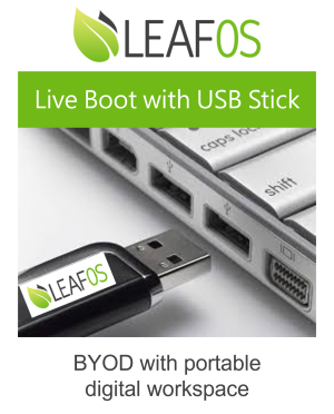 LEAF OS可採永久和臨時兩種不同的方式部署配置,一是直接安裝於電腦硬碟,立即將主機轉換為強大的精簡型電腦,此種重新轉換PC作業系統的配置方式延長了老舊電腦設備的使用壽命; 二是採用LEAF OS USB隨身碟啟動運行,USB開機不會影響使用者的既有作業系統、檔案和硬碟,同時為遠端工作提供了彈性與隨插即用的便利性,當遠端工作完成後,可隨時視情況重新啟動選擇恢復其原生作業系統,電腦設備即可立即恢復為一般個人使用。