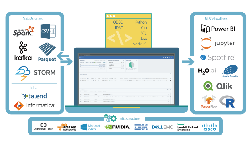 SQream DB 可無縫整合既有之 Data Warehouse 或 Hadoop 環境,彰顯既有的投資效益!