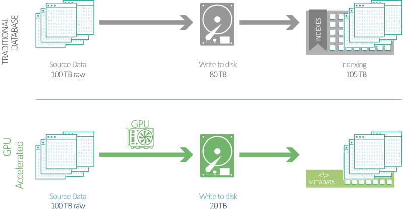 SQream DB 具備創新的 AI 輔助 always-on 壓縮技術,經由高達 5:1 以上的即時資料壓縮,大量減少 I/O 次數,可顯著改善資料存取效能並降低儲存所需空間。SQream DB 優異的壓縮 / 解壓縮效能遠比傳統 CPU 快 50 倍以上,因此,SQream DB 每張 GPU 卡每小時 data ingestion 速度可高達 3TB,即使僅採用最基本款的硬體設備,亦不影響 SQream DB 運作效率。