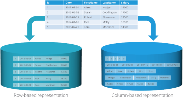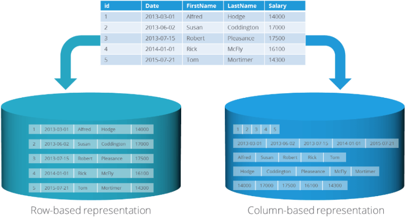 - 垂直式分割 (Vertical Partitioning) - Columnar Engine:提供選擇式的子資料欄 (Subset of Column) 存取方式,主要目的在於減少磁碟掃描及記憶體 I/O 次數,此一存取方式更為快速直接,使 GPU 運作達到最佳化。